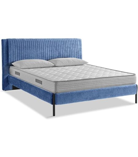 EVERGREENWEB MATERASSI & BEDS Evergreenweb - Letto Matrimoniale con Materasso Waterfoam + 2 Cuscini gratis, Rete a Doghe in Legno 160x195 cm, Elegante Testiera Imbottita a Strisce
