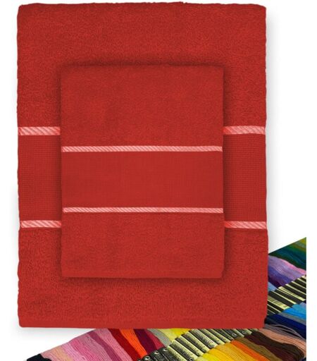 TEX FAMILY Set Asciugamani Spugna Tela Aida da ricamare Punto Croce 1+1 Viso E OSPITE con Filato in Omaggio Rosso