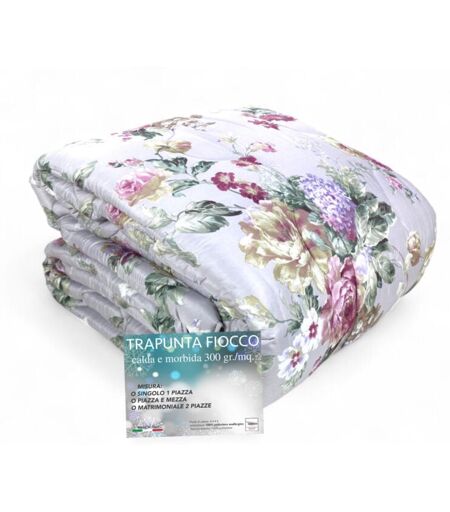 TEX FAMILY Trapunta Fiocco Sanderson Fiore Fondo Grigio Invernale, Piumone Caldo 300 gr/mq, Motivo Floreale Elegante, Made in Italy 2 PIAZZE