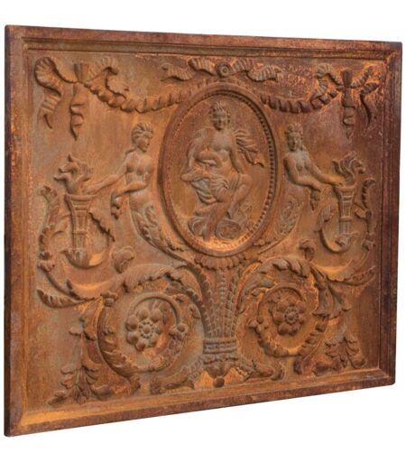 Piastra da camino realizzata in fusione di ghisa decorata a rilievo, di dimensioni L65XPR2XH81 cm . Oltre ad immagazzinare ed irradiare calore prima e dopo lo spegnimento del fuoco, è anche un originale complemento d’arredo. Trattandosi di finiture artigianali, la finitura potrebbe non corrispondere fedelmente alle fotografie, presentando anche parti in ruggine naturale tali da rendere ogni articolo un pezzo unico. ...