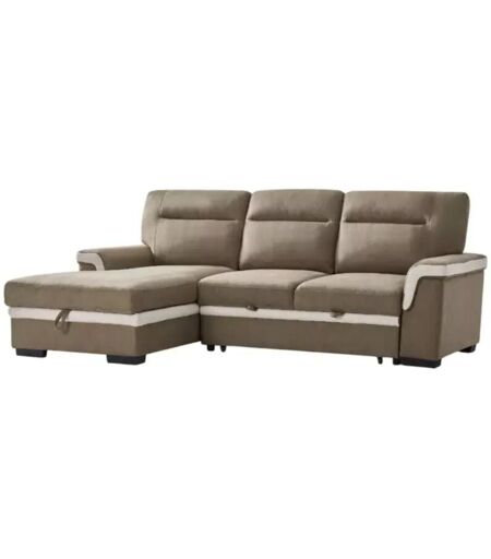 BELLAHOME divano letto angolare "erika" in tessuto marrone con penisola a sinistra 254x92/165x102 cm