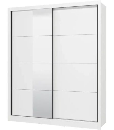 armadio bellahome 'alba' con 2 ante scorrevoli con specchio bianco, 180x59,8x215,5 cm