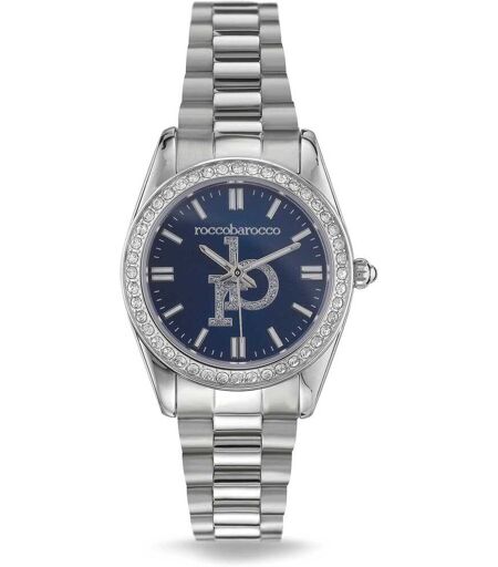 Orologio Di Roccobarocco Solo Tempo Da Donna Della Collezione Rb Perpetual. Cassa In Acciaio Con Pietre Di Forma Rotonda Argento. Il Colore Del Quadrante È Blu Il Cinturino È In Acciaio Argento. Diametro Della Cassa: 31mm. Resistenza All'Acqua Di 5atm. ...