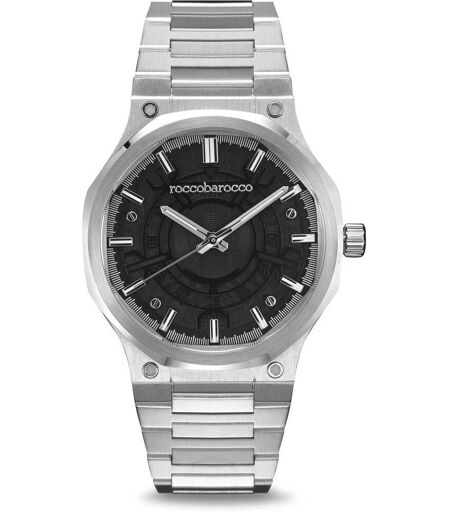 Orologio Da Uomo Di Roccobarocco Della Collezione Hypnotic. Orologio Solo Tempo Con Movimento Tmi Vj21c E Resistenza All'Acqua Di 5 Atm. Cassa In Acciaio Di Forma Ottagonale, Diametro: 40x50mm E Di Colore Argento. Quadrante Di Colore Nero. Cinturino In ...