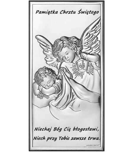 SOUVENIR UNICO Quadretto esclusivo in argento di , produttore leader di souvenir in argento. Il quadro rettangolare raffigura Un angelo con una lanterna . Nella parte superiore dell'immagine c'è la scritta "Ricordo del Santo Battesimo", mentre in basso c'è il saluto " Che Dio ti benedica..." Un'immagine del genere è un regalo o un souvenir unico per un'occasione speciale come il Santo Battesimo. ...