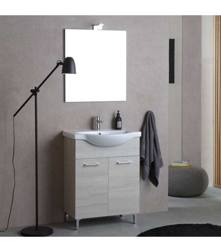 KIAMAMI VALENTINA - Mobile Bagno a Terra 65 Cm Quercia Grigio Effetto Legno Rimini