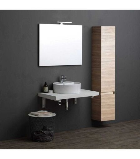 KIAMAMI VALENTINA - Mobile Bagno 90Cm Top Bianco e Colonna Rovere Naturale Valentina