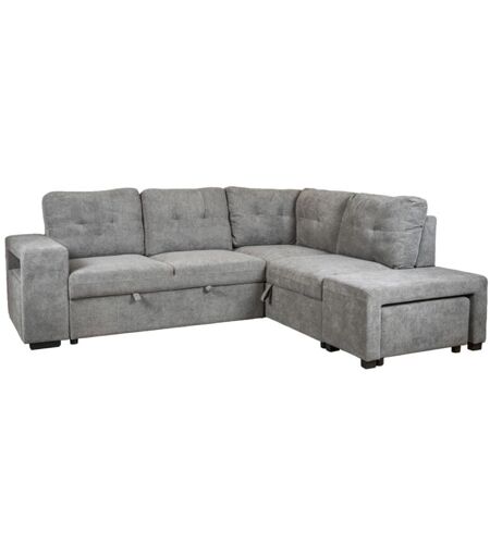 BELLAHOME - divano letto con penisola a destra 'gaia' tessuto grigio con pouf e contenitori, 254x83/194x88 cm