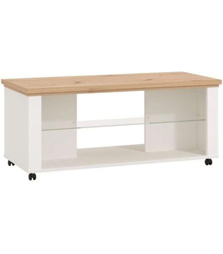 Tavolino da soggiorno "Vigo" bianco e quercia, con ripiano in vetro e ruote.Tavolino elegante e multifunzionale, che unisce un design classico a dettagli moderni. La struttura bianca e quercia è completata da un ripiano in vetro, creando un piacevole contrasto visivo. Le ruote integrate consentono di spostarlo facilmente, rendendolo un complemento d'arredo versatile per il soggiorno. Caratteristiche del prodotto Finitura Prodotto Liscia Materiale MDF Colore Bianco Marca BellaHome Ferramenta per montaggio Incluso Mobile Da assemblare Dimiensioni prodotto Larghezza: 1.145 m. Altezza: 0.49 m. Profondit: 50.5 cm. Peso: 0.0 Kg. Dimensioni Imballo Larghezza: 54.5 cm. ...