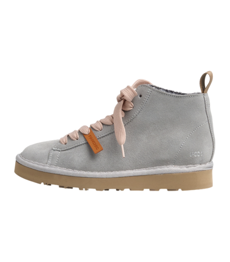 Polacchini donna P001 con tomaia di camoscio grigio chiaro, lacci a trama larga rosa cipria e fodera interna di faux fur. La P001 con le sue linee pulite rappresenta il perfetto equilibrio fra design e comfort. Suola leggera in EVA alta 2,6 cm con logo Panchic in rilievo; Allacciatura ad otto fori senza occhielli; Fodera di tessuto effetto pelliccia; Sottopiede estraibile in faux-fur; Comodi elastici interni per agevolare i movimenti e fissare la linguetta; Lacci di ricambio: abbinati al colore della suola; Materiali: 100% pelle. ...