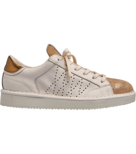 Scarpe allacciate donna P01 con tomaia in nappa, sfoderata, color avorio e lacci piatti di cotone tono su tono. Il puntale in camoscio effetto lurex dorato si abbina allo spoiler in nappa laminata. La linea P01 rappresenta il perfetto equilibrio fra design e comfort. Dettagli Suola di 2,7 cm; Senza fodera interna; Sottopiede removibile antibatterico in microfibra; Comodi elastici interni per agevolare i movimenti e fissare la linguetta; Materiale: 100% Pelle. ...