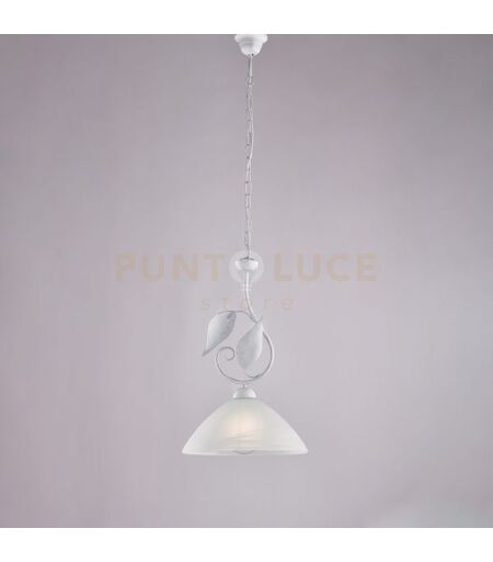 Lampadario In Ferro Laccato Bianco Con Decorazione Argento Antico E Diffusore In Vetro Diametro 30 Alabastro Bianco 1 Luce ...