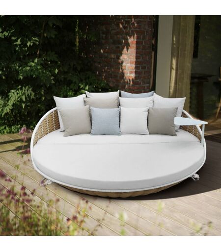 Un’icona di design e comfort per il tuo outdoor: questo divano letto sospeso o da terra unisce materiali resistenti e dettagli sofisticati. La struttura in alluminio con intreccio in rattan garantisce durata e stile, mentre i cuscini sfoderabili offrono praticità. Il tavolino integrato completa il set, rendendolo perfetto per momenti di puro relax all’aperto. ...