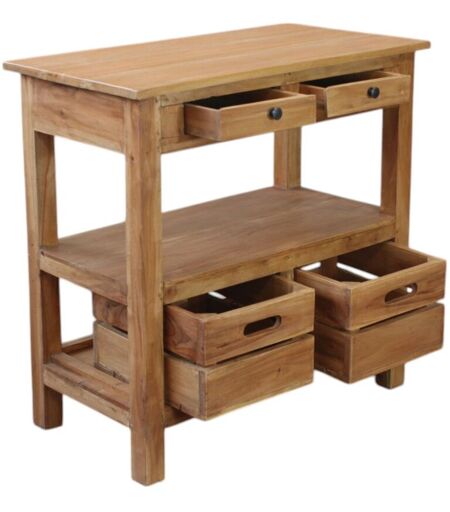 Un mobile in legno riciclato che unisce funzionalità e fascino rustico. Con due cassetti, due cestoni in legno e un ripiano aperto, offre spazio e versatilità per ogni ambiente. La texture del legno recuperato esalta il suo stile unico, rendendolo un elemento distintivo e sostenibile per la tua casa. ...