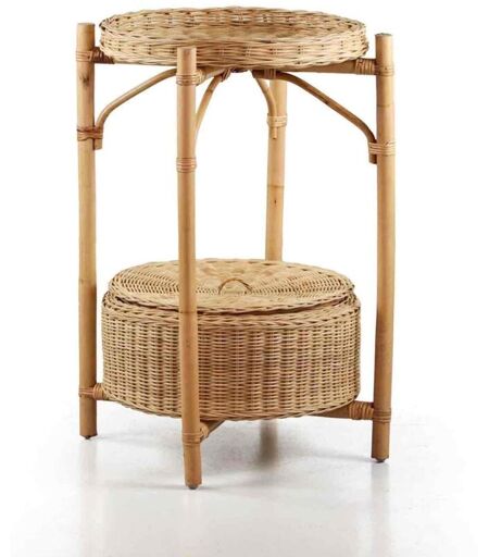 ESTOSA - Tavolino alto in rattan naturale con porta oggetti - Miles