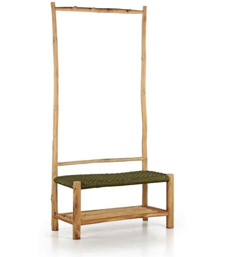ESTOSA - Panca appendiabiti in legno di teak e corda verde - Terra