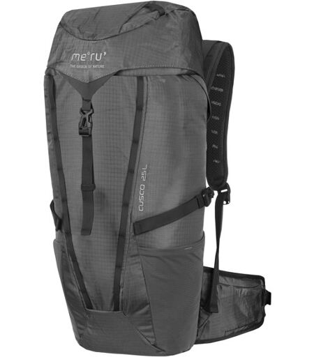 Cusco 25 di Meru é uno zaino da trekking pratico e leggero, pensato per le avventure giornaliere in montagna. 2 tasche in mesh esterne porta basstoncini piccola tasca esterna spallacci regolabili e imbottiti schienale ergonomico 1 tasca laterale ...