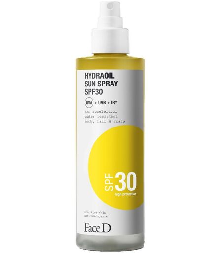 HCS Srl FaceD Hydraoil Spray Solare SPF30 - Olio solare protettivo per corpo e capelli - 200 ml