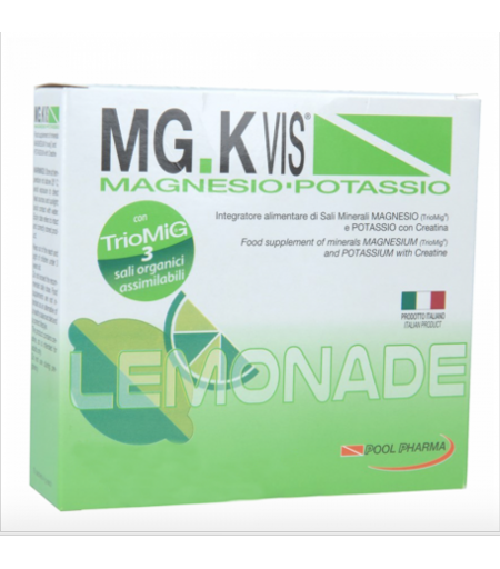 MG.K Vis Magnesio - Potassio - Lemonade - Descrizione Integratore a base di 3 sali organici assimilabili di magnesio (sali di magnesio dell'acido citrico, magnesio gluconato, magnesio lattato) e potassio con creatina. Il magnesio contribuisce alla riduzione della stanchezza e dell'affaticamento, al… ...