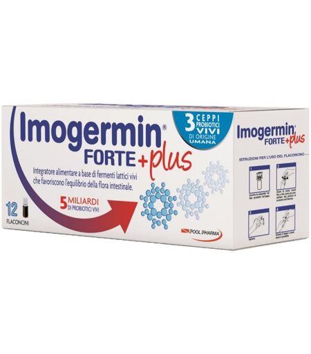 Imogermin - FORTE + plus - Descrizione Integratore alimentare a base di probiotici vivi, utile per per riequilibrare la microflora e contrastare i disturbi intestinali. I probiotici hanno elevata gastroresistenza e capacità di colonizzazione, inibiscono lo sviluppo di patogeni ripristinando rapidam… ...