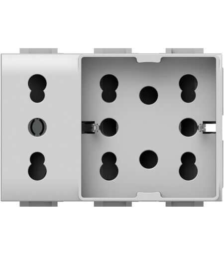 La presa 10/16 A 2Pნ A è una presa elettrica che in soli 3 moduli dispone di 1 presa schuko e 1 presa bipasso oppure di 3 prese bipasso. Un innovativo punto presa pratico e ideale per collegare numerosi dispositivi. Alimentazione diretta 110-230 V 50-60 Hz. Mai più bisogno di adattore per la spina schuko, perfetta compatibilità estetica con i frutti originali. Compatibile con Vimar Plana. ...