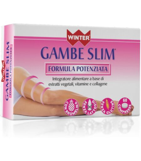WINTER - GAMBE SLIM - Descrizione Integratore alimentare con ananas, Centella, vite rossa, meliloto, ippocastano e mirtillo utili per favorire la funzionalità del microcircolo; sono presenti inoltre le vitamine C ed E che contribuiscono alla protezione delle cellule dallo stress ossidativo; è arric… ...
