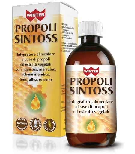 WINTER - PROPOLI SINTOSS - Descrizione Integratore alimentare a base di propoli unitamente a liquirizia marrubio lichene islandico e timo utili per favorire la fluidità delle secrezioni bronchiali. La formulazione è arricchita con tiglio ed altea utili per il benessere della gola e con erisimo co… ...