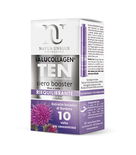 Siero Booster Riequilibrante Il Siero Booster Riequilibrante viso e collo è l’ideale “bilanciamento” per il comfort della pelle. La sua efficacia è amplificata dall’estratto botanico di Bardana 10 volte più concentrato. Utile in caso di eccessiva seborrea o secchezza, alla comparsa dei brufoli e impurità e in caso di arrossamenti cutanei. L’uso puro del Siero Booster Riequilibrante ne garantisce un effetto immediato. Versa sul palmo di una mano due gocce di 2 Sieri Booster a scelta tra quelli della linea Ialucollagen TEN) e miscelale con la crema Super Idratante. Mescolate fino a ottenere una texture omogenea e applicate sul contorno occhi con un massaggio delicato. Tutti i prodotti TEN sono dermatologicamente testati e testati per il Nichel (contenuto inferiore a 0,0001%). Senza aggiunta di Parabeni, Olio di Vaselina, PEG, Siliconi, EDTA, lanolina, SLES/SLS, coloranti sintetici. Componenti Ialucollagen, Arctium Lappa Root, Mimosa Tenui, Hamamelis Virginiana Leaf Water, ...