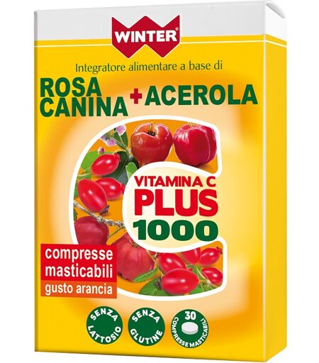 WINTER VITAMINA C PLUS 1000 - Descrizione integratore alimentare a base di Acerola e Rosa canina (fonti naturali di vitamina C) che svolgono un'azione di sostegno e ricostituente; la vitamina C è utile nei casi di stanchezza ed affaticamento coadiuvando la normale funzione del sistema immunitario.… ...