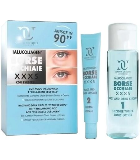 IALUCOLLAGEN BORSE OCCHIAIE XXXS - Descrizione Trattamento Contorno Occhi Lozione Tonica + Crema è un trattamento che nasce da una nuova tecnologia in grado di correggere e ridurre rapidamente le inestetiche e indesiderate borse e occhiaie. La Lozione Tonica è stata studiata per preparare la pelle … ...