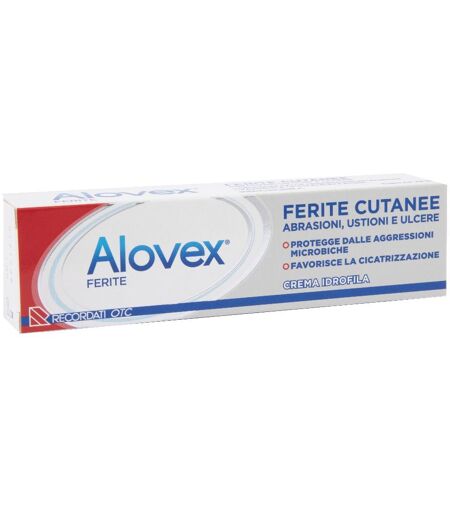 Recordati spa Alovex Ferite Crema Idrofila 30ml Con Acido Ialuronico E Argento Metallico Per Ferite, Abrasioni, Ustioni E Ulcere