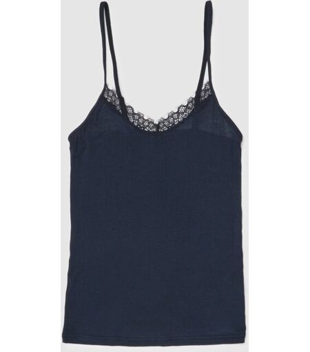 OVS, Canotta Blu Regular Fit Con Scollo A V Decorato Con Pizzo, Donna, Blu, Taglia: M
