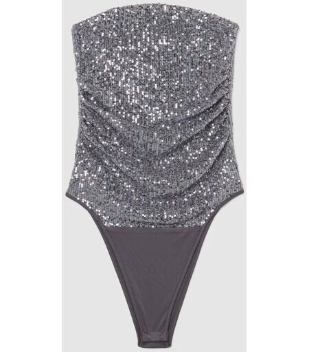 B.ANGEL, Body Grigio Con Paillettes Vestibilità Fitted, Donna, Grigio, Taglia: M