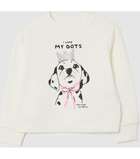 OVS KIDS, Felpa Bianca Da Bambina In Puro Cotone Con Stampa Cane Regular Fit, Bianco, Taglia: 9-10