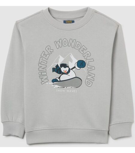 OVS KIDS, Felpa Da Bambino In Puro Cotone Grigia Regular Fit Con Stampa, Grigio, Taglia: 3-4