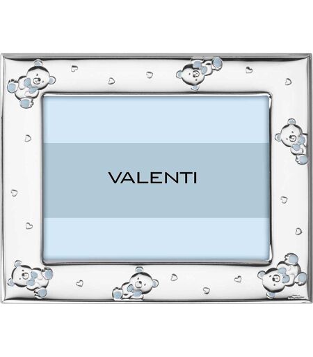 Cornice Portafoto Di Valenti. Cornice Portafoto In Argento Laminato E Retro In Legno Di Colore Celeste Con Orsetti. Ideale Per Prima Infanzia. Le Dimensioni Sono 9x13 Cm. La Referenza È 73126 3lc, Colore: Arancione, Azzurro, Beige, Bianco, Blu, ...