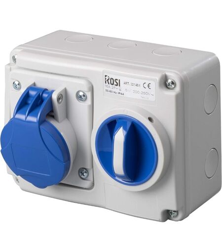 ROSI Presa interbloccata orizzontale con sezionatore, con fondo, 230V, 3 poli, 32A, IP54 - 14.3234B6