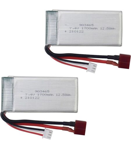 YUNIQUE GREEN-CLEAN-POWER - 2 Pezzi Batterie al Litio 7.4V 1700mAh Connettore Universale Prestazioni Ottimizzate Sicurezza e Durabilità, Silver