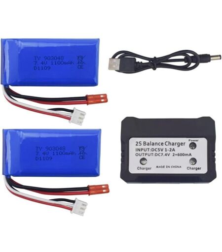 YUNIQUE GREEN-CLEAN-POWER - Kit 2 Batterie LiPo 7.4V 1100mAh con Caricatore Connettore Universale Alta Capacità e Lunga Durata, Blu