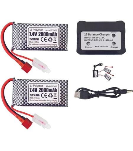 YUNIQUE GREEN-CLEAN-POWER - Set 2 Batterie LiPo 7.4V 2000mAh con Connettore T-Plug e Caricatore 2in1 – Elevata Capacità, Nero