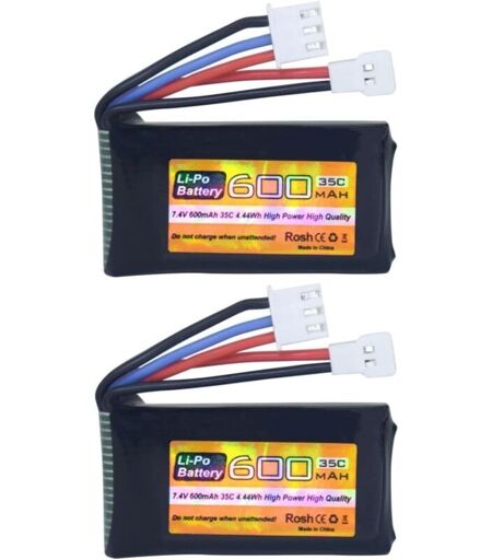 YUNIQUE GREEN-CLEAN-POWER - Set 2 Batterie LiPo 7.4V 600mAh 35C 2S con Connettore Molex – Alta Potenza, Scarica Rapida e Dimensioni Compatte – Per