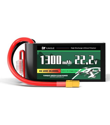 YUNIQUE GREEN-CLEAN-POWER - Batteria LiPo 22.2V 1300mAh 100C 6 Celle con Connettore XT60 – Cavo in Silicone e Guscio Morbido – Dimensioni 74x38x38 mm