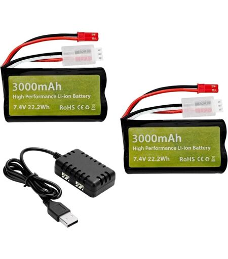 YUNIQUE GREEN-CLEAN-POWER - 2 Batterie Ricaricabili Li-Ion 7.4V 3000mAh 15C 2S con Connettore JST-2P + Caricabatterie 2-in-1 – Ricambio per