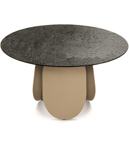 CAPODARTE - Tavolo rotondo MAYA140 con base in metallo Beige e piano in vetro Fume'