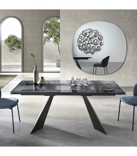CAPODARTE - Tavolo allungabile 240 cm waters base in metallo Nero e piano in vetro Fume'