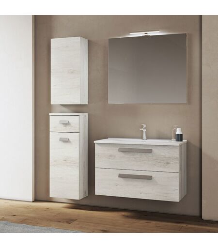 LIBEROSHOPPING Mobile bagno sospeso 82 cm base 2 cassetti con lavabo ANGELA1 Quercia Bianco