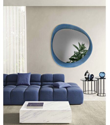 CAPODARTE - Specchio sagomato kimi con cornice cannettata Blu
