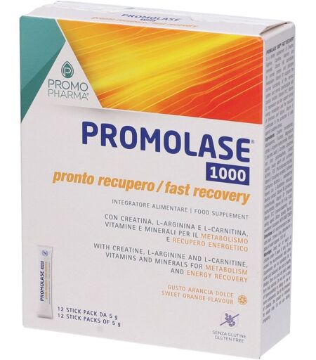PromoPharma Promolase 1000® Pronto Recupero Bustine Gusto Arancia Dolce 12 Stick Promolase 1000® Pronto Recupero è un integratore alimentare formulato per sostenere il metabolismo energetico, contrastare la stanchezza e aiutare l'organismo a recuperare tono ed equilibrio nei periodi di affaticamento fisico e mentale. La formula contiene una sinergia di attivi come creatina, arginina, carnitina, vitamine del gruppo B, vitamina C, vitamina E, ferro e magnesio, che svolgono un'azione completa di supporto: Vitamina B6: favorisce il normale metabolismo di proteine e glicogeno. Vitamina B1: supporta sistema nervoso, funzione psicologica e cardiaca. Vitamina B12, Vitamina C, Magnesio, Ferro: contribuiscono al metabolismo energetico e alla riduzione della stanchezza. Vitamina E: protegge le cellule dallo stress ossidativo. Indicato in situazioni di astenia, stress, convalescenza o sport intenso, è utile anche nei cambi di stagione o quando serve un rapido recupero dell'energia. Il gusto arancia dolce lo rende piacevole da assumere. Formato: 12 stick da 10 ml Gusto: Arancia Dolce Con creatina, carnitina, arginina, vitamine e minerali Senza glutine e naturalmente privo di lattosio FAQ - Promolase 1000 Pronto Recupero A cosa serve Promolase 1000 Pronto Recupero? Serve a contrastare stanchezza e affaticamento e a sostenere il metabolismo energetico nei momenti di stress fisico e mentale. Quando è consigliato assumerlo? È consigliato in caso di stanchezza, calo di energie, convalescenza, sport intenso o durante i cambi di stagione. Quali ingredienti contiene? Contiene creatina, carnitina, arginina, vitamine B1, B6, B12, C, E, magnesio e ferro per un effetto tonico-energetico completo. Ha controindicazioni? Non sono note controindicazioni specifiche se usato correttamente. Consultare il medico in caso di patologie o terapie in corso. Il prodotto è senza glutine? Sì, è senza glutine e naturalmente privo di lattosio, adatto anche a soggetti con intolleranze. ...