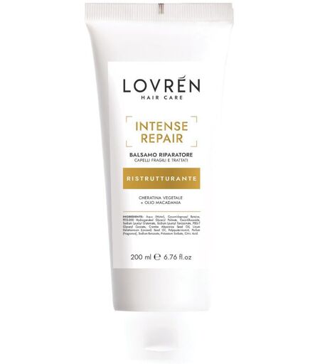 LOVREN - HAIRCARE - INTENSE REPAIR BALSAMO RIPARATORE - Descrizione Balsamo riparatore, effetto ristrutturante. Azione riparatrice dovuta all'effetto della cheratina vegetale. Balsamo ideale per capelli secchi e sfibrati/danneggiati: districa, nutre e rivitalizzala fibra capillare in profondità, do… ...