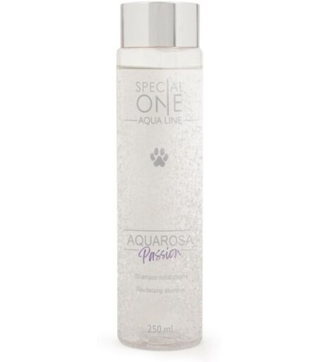 Special One Cane Aqua Line Shampoo Aqua Rosa Passion è uno shampoo multivitaminico professionale arricchito con estratti di rosa canina, malva e Chlorella Vulgaris. La formula concentrata con perla cangiante dona morbidezza e lucentezza al manto, mentre l'acqua marina purifica la pelle. Adatto per cani e gatti di tutti i tipi di manto. Formato: Flacone 250 ml ...